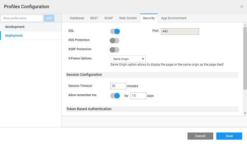 For Development Profile SSL Encryption is set by default. You can choose to change the setting for  Deployment Profile.