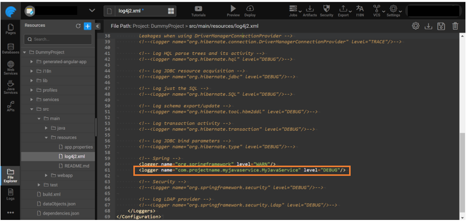 log4j2.xmlfile, which is set to INFO by default in WaveMaker's generatedlog4j2.xml.