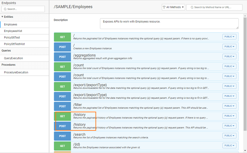 Two types of REST APIs are generated for the DB2 Temporal tables: