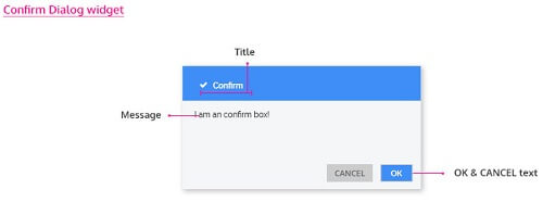 Confirm Dialog is used to get confirmation from the user. In addition to the properties mentioned for Alert Dialog, it has an additional Cancel button. The most common usage is to confirm a delete action.
