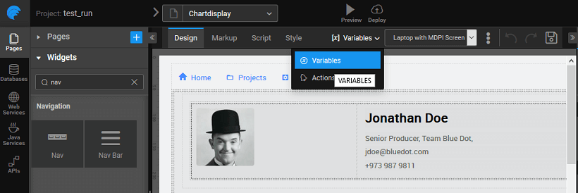 1. Bind the Value property of the Menu widget to the variable created in the previous step.