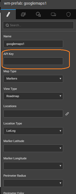 - Drag and drop the Googlemaps prefab onto the canvas on any of the pages in your application.