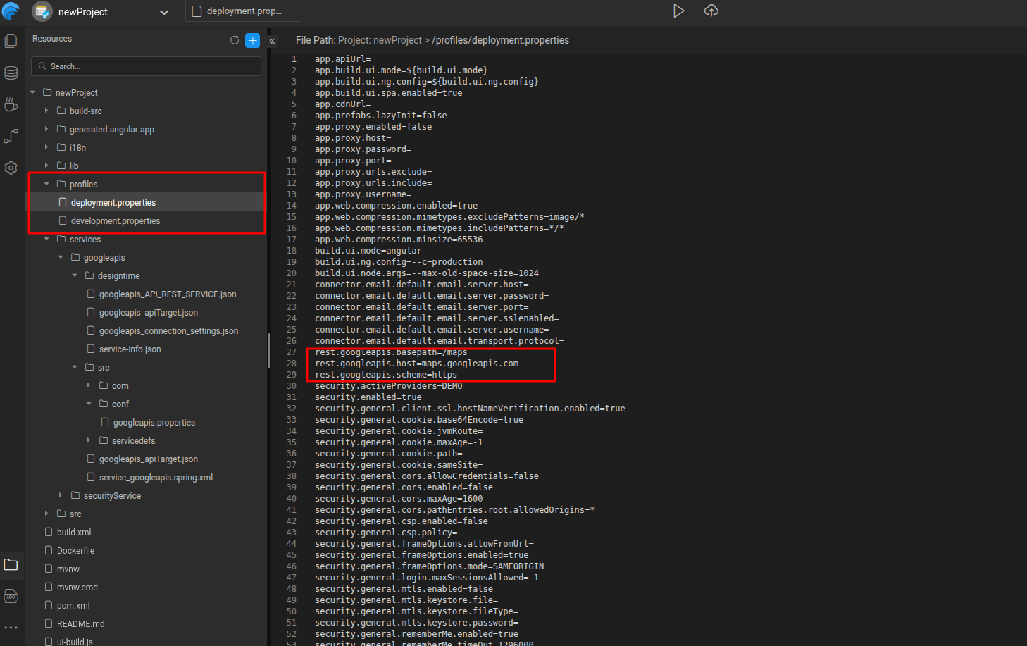 For configuration management and externalization, WaveMaker applications use profile.properties to store configuration as key–value pairs. This allows the same WAR (build artifact) to move across environments without rebuilding, with values supplied via environment variables, bundled files, or by building profile-specific WARs (QA, production etc.) using a selected build profile (for example, mvn clean install -Pproduction).