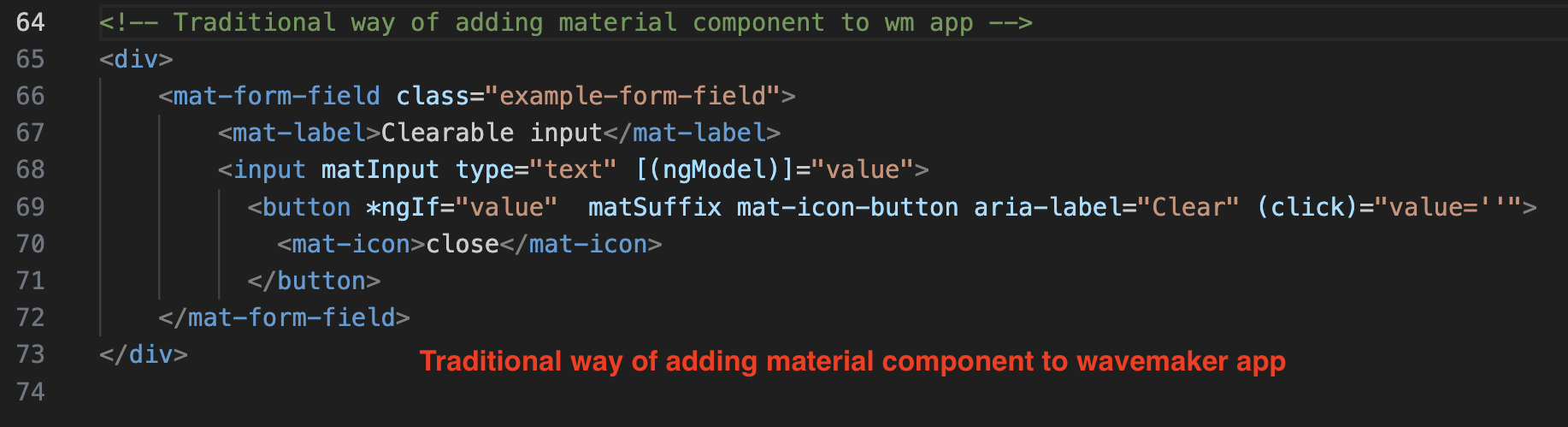 Since it is now a free angular project, developers have flexibility to easily add other angular component libraries directly and work with them to take development forward. For example: Below is the sample that shows how they can add material components to existing pages and do data binding and event binding in a regular way.