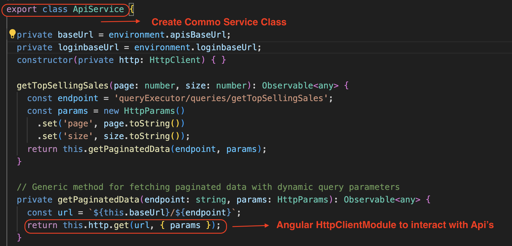 Developers can write regular Angular services to manage API interactions.