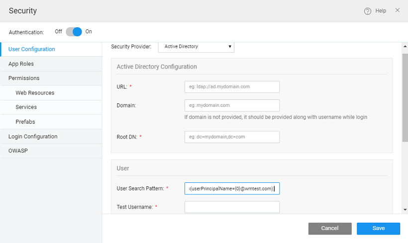 In WaveMaker, you can set AD as security service provider and configure the details. There are few scenarios which need special configurations: