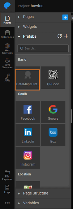 Drag and drop a Container Widget onto the canvas, and provide a Name: mapContainer, and set the Class Name: map-container.