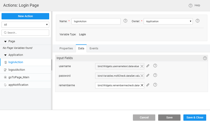 To ensure that the password field is secure, it is advisable to store it in an encrypted format. For this, we will use an md5 code to encrypt the password entry before passing it onto the live variable for insert into the database table.