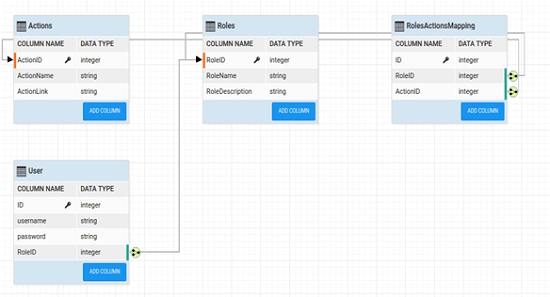 - Please make sure that you configure the security in the application with the database. We are using a sample database with Actions, Roles, Users, and