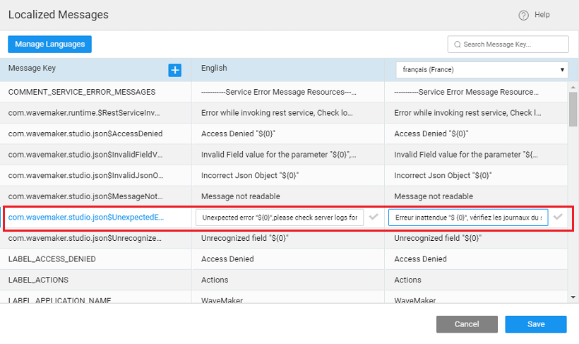 1. The messageKey sent in the above error format needs to be added in the localization i.e., i18n dialog