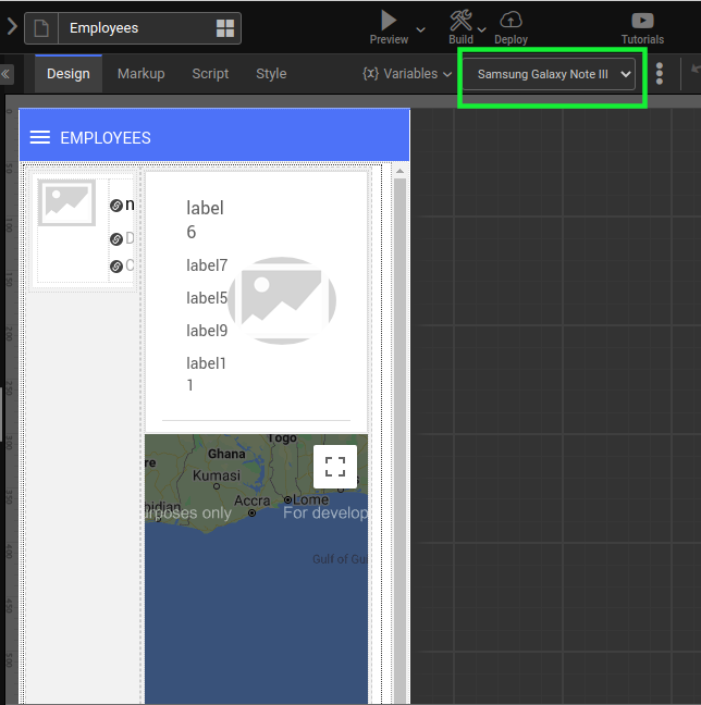 But this second column should be displayed only in tablet view. Therefore, configure this by setting the showindevice property to Tablet Portrait and Tablet Landscape.