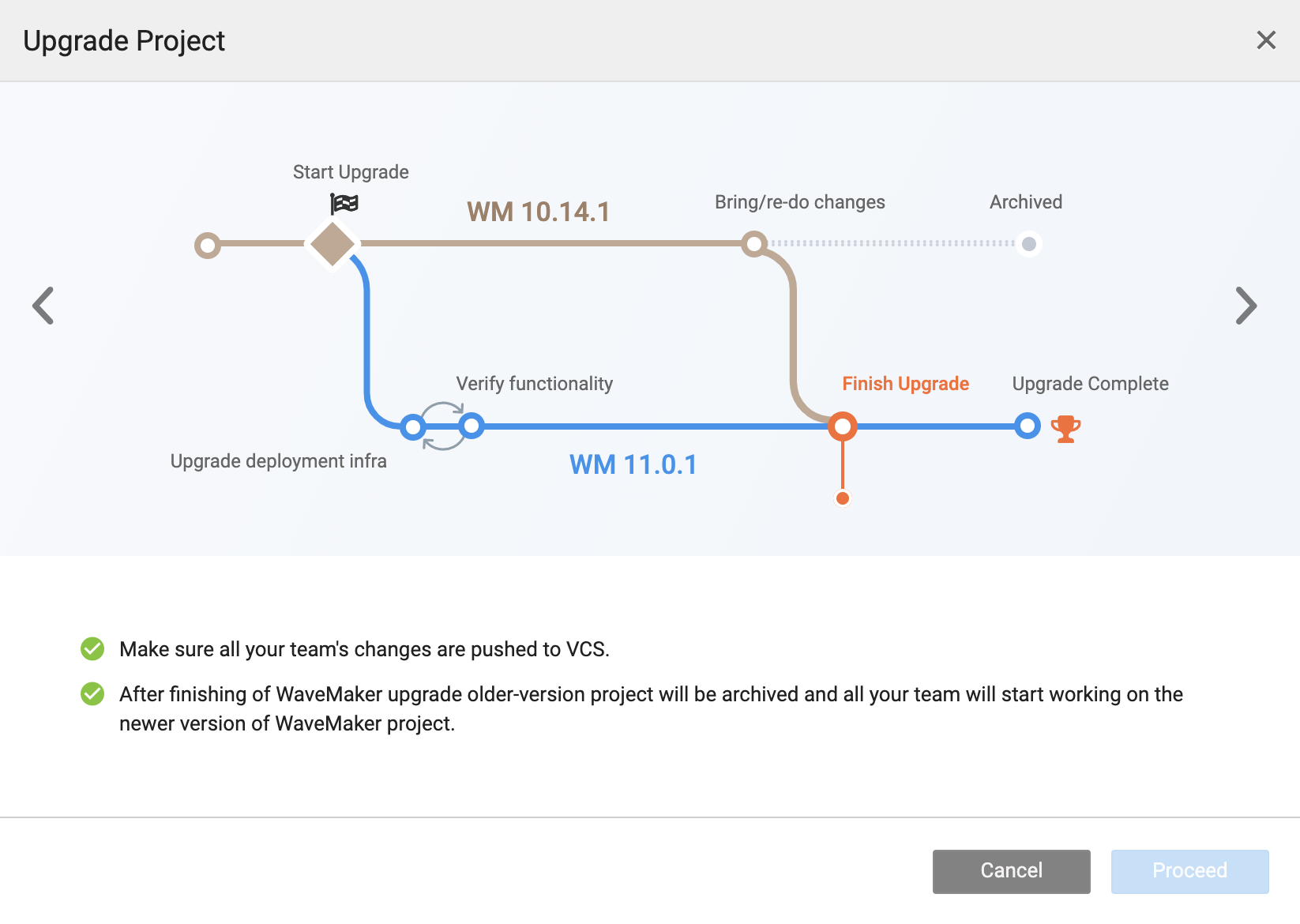 Immediately, you will see the following contextual help guide that illustrates the upgrade flow and checklist.