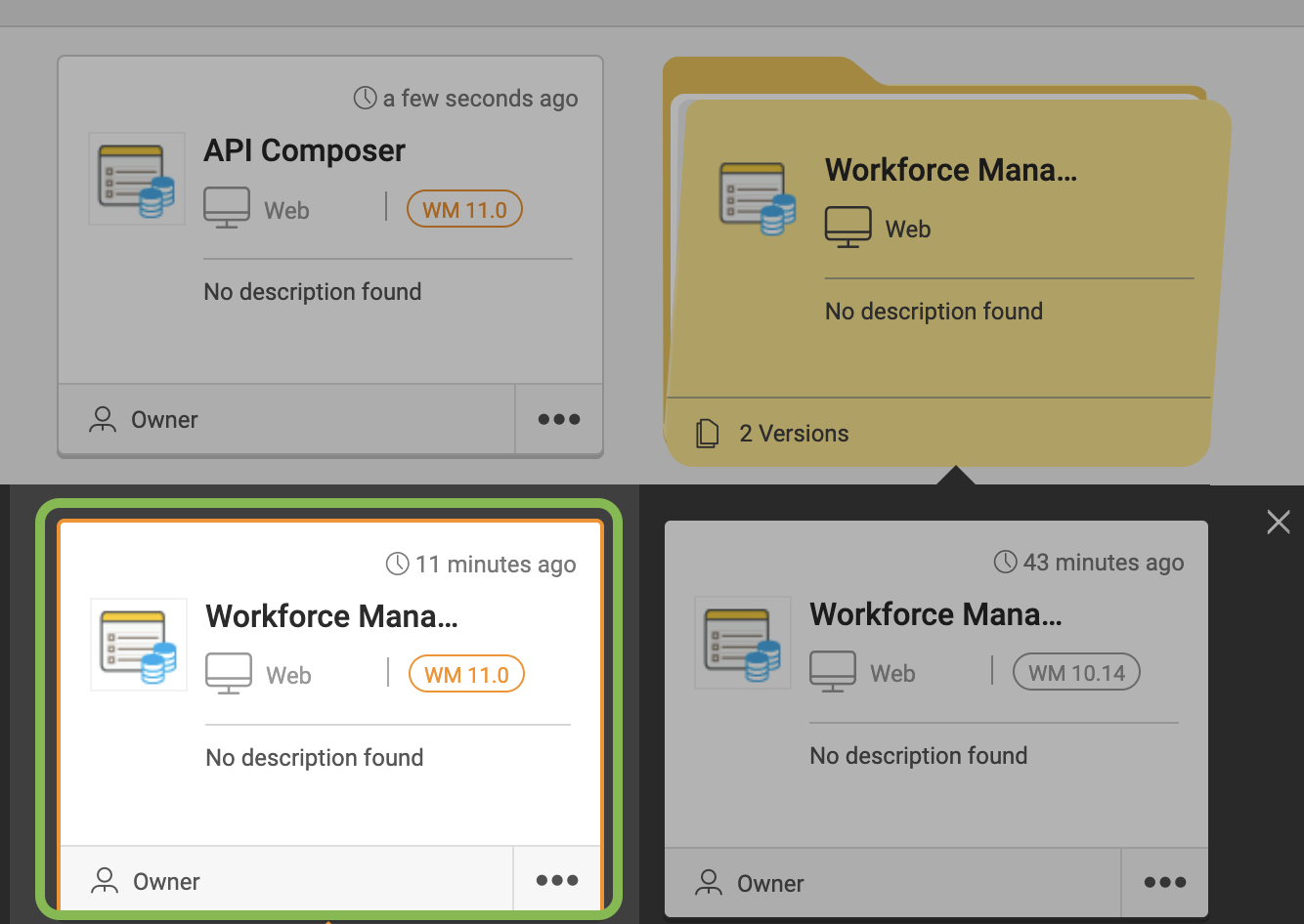 From this project card, you will access the app in the WaveMaker 11 version of the project.