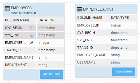 The temporal feature in the DB2 product enables you to accurately track information and data changes over time and provides an efficient and cost-effective way to address auditing and compliance requirements, without having to specifically code for the same (see here for Temporal Support). You can use the Data and Live Widgets to manipulate values from the temporal tables.