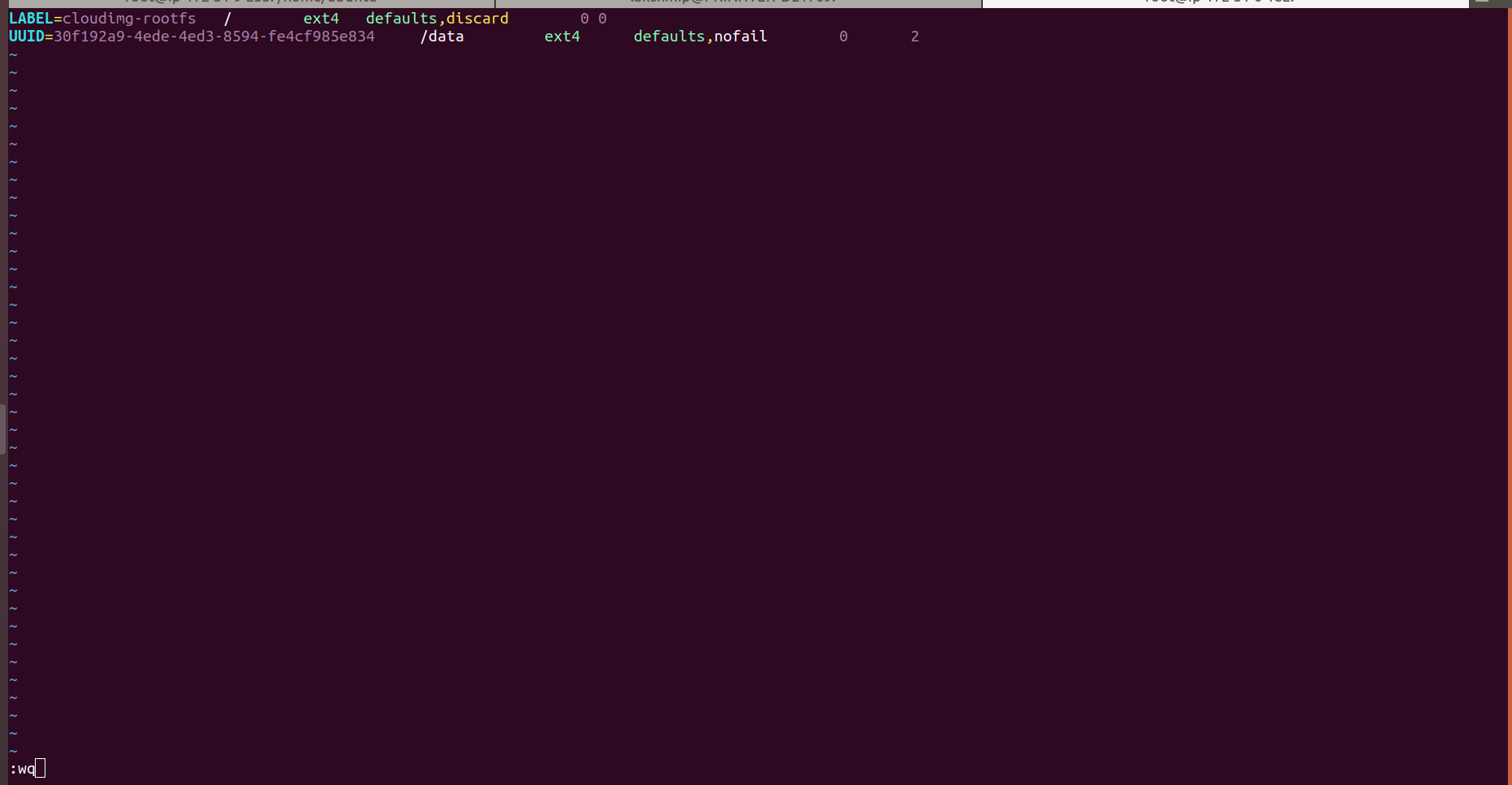 - To enter the UUID of the disks in .fstab, use the following format.