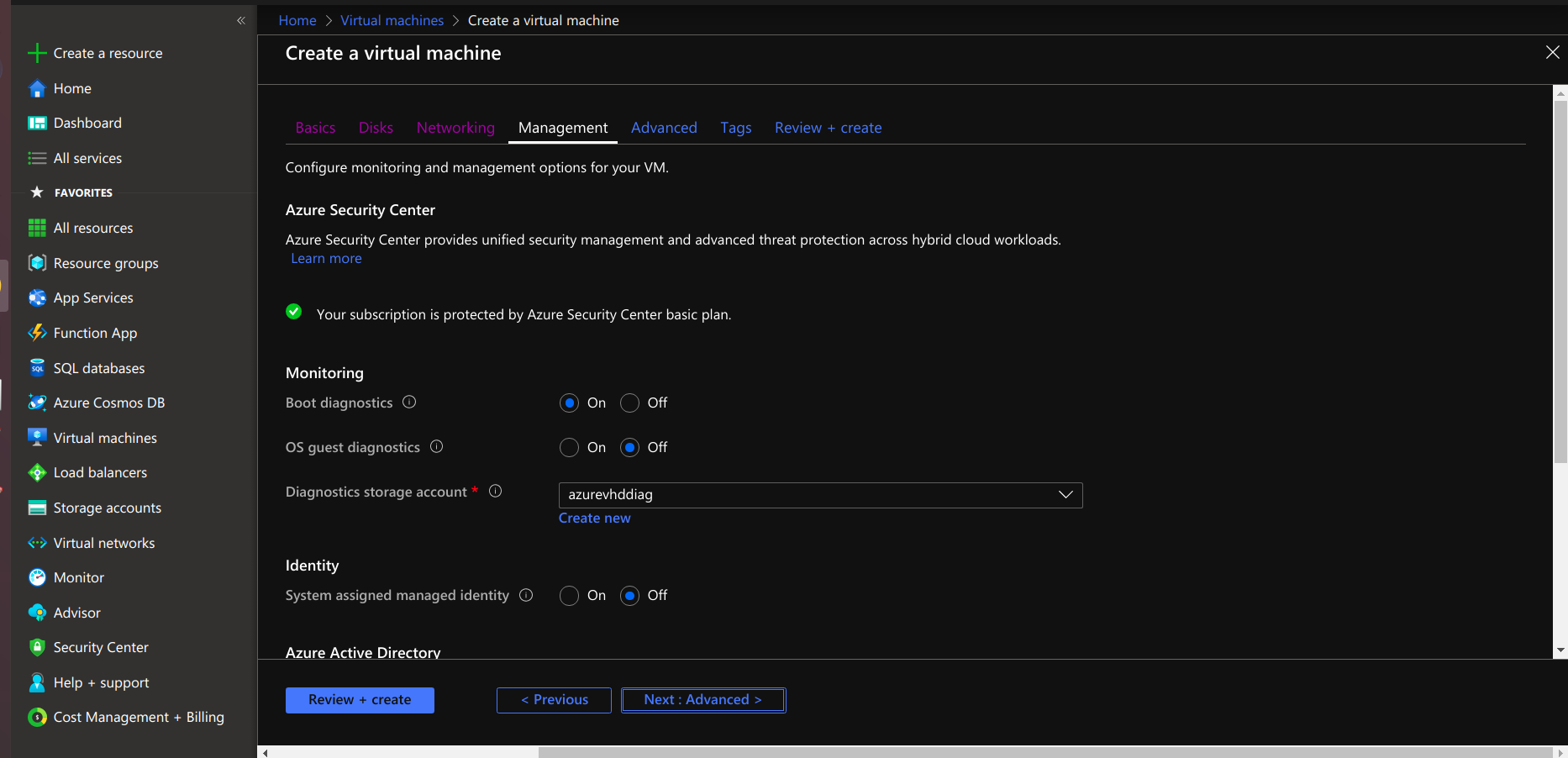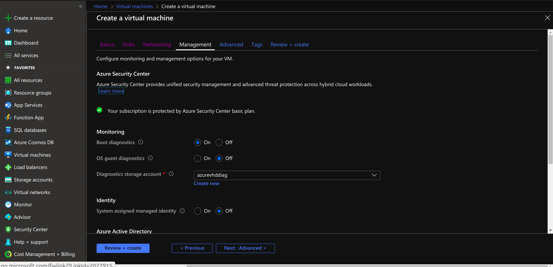 - Configure monitoring and management options for the virtual machine.