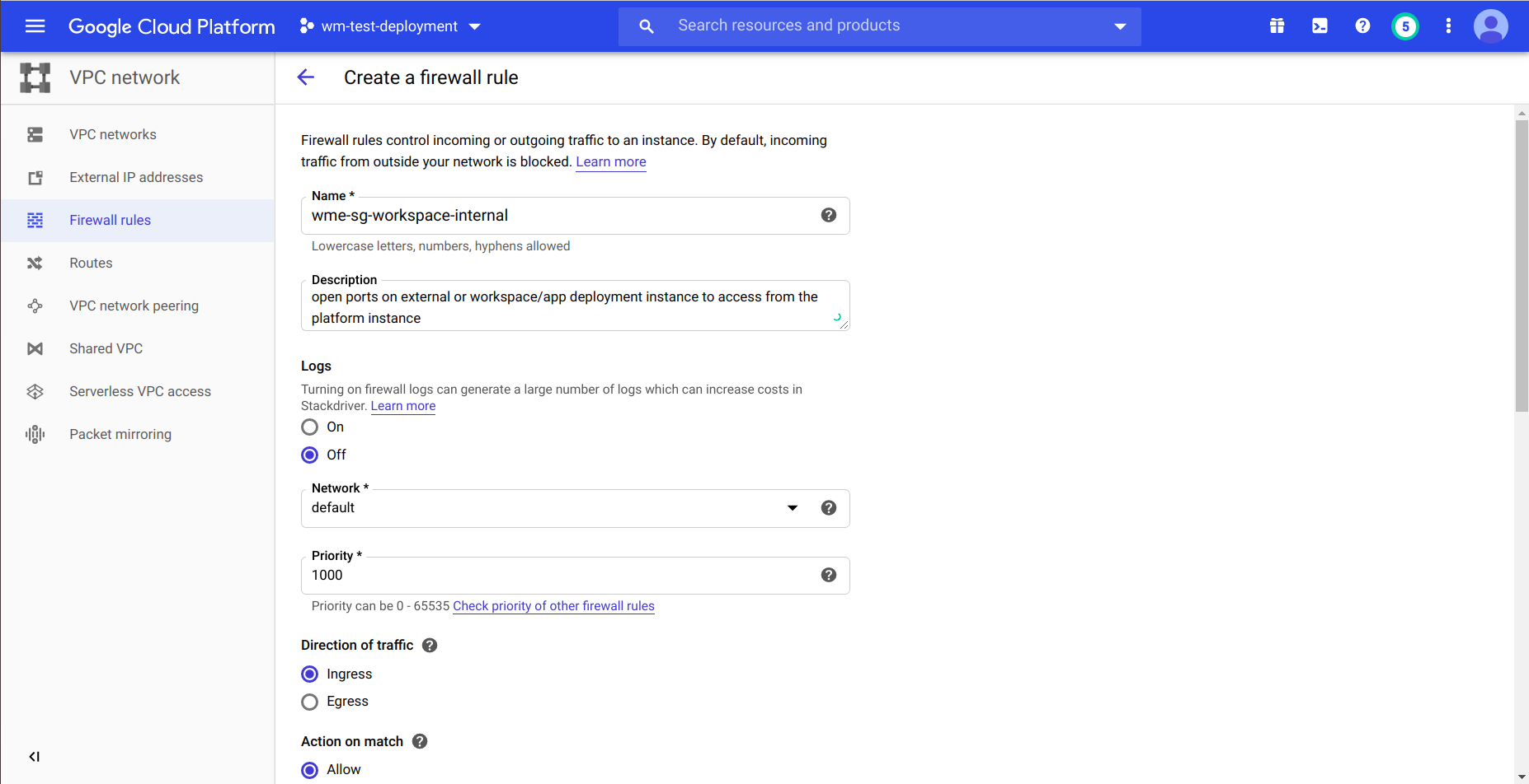 Create firewall rule for StudioWorkspace Instance / AppDeployment Instance