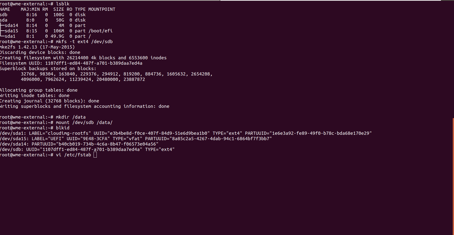 - To mount an attached Disk on every system reboot, add an entry for the device to the /etc/fstab file.