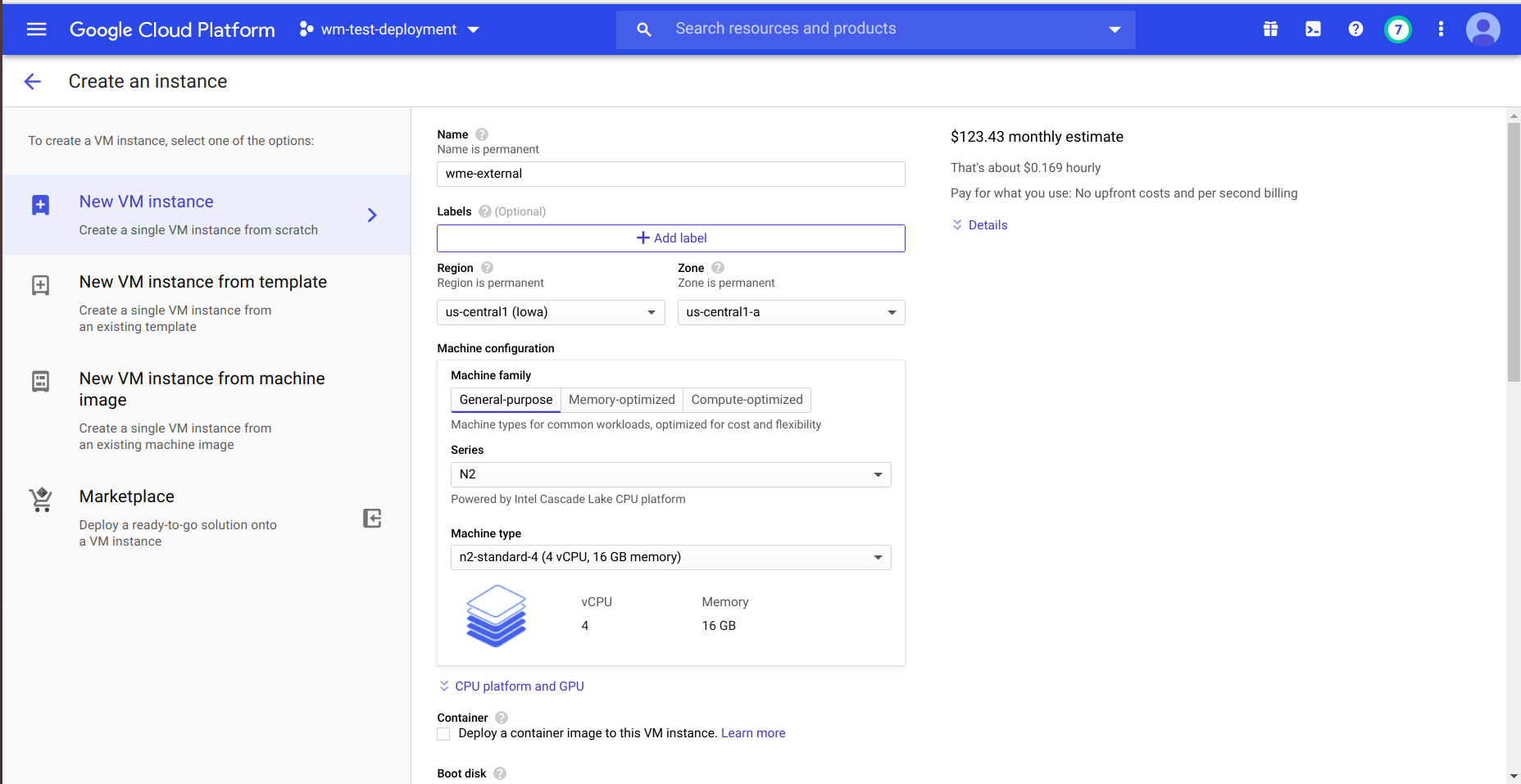 - Select region,zone and provide name for Instance.select machine type with minimum 16 GB memory.
