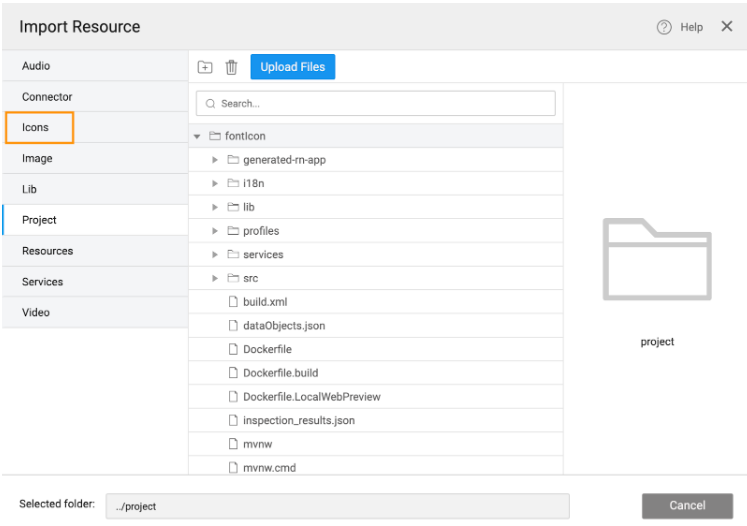 1. Go to the Import Resource dialog to view the imported custom font family in the Icons tree.